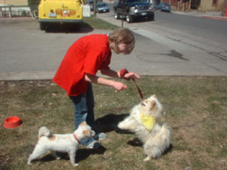 " I beat our family If we want to stop the violence and give all kids a sense of compassion for life, we must teach them that compassion through positive activities. In our program kids learn compassion, responsibility, self esteem, confidence and service through helping train and care for homeless puppies. Maybe we can prevent kids from becoming violent by teaching them compassion for life. They learn the benefits of positive praise and the rewarding satisfaction of training a helpless puppy. They gain confidence, self esteem and many more values by performing with their trained pups which will help them in their lives. |