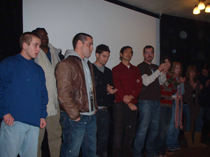group of young actors on this project and showed her support by