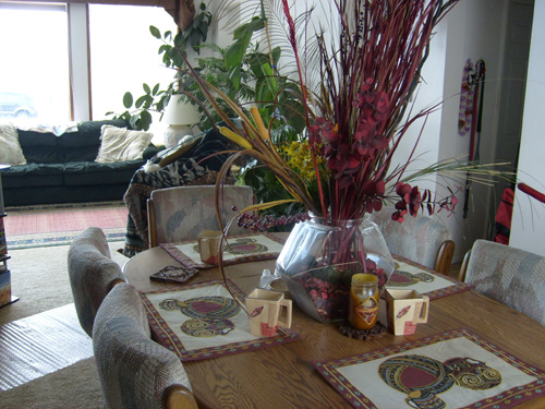 Floor in Living Room and New LEather Furniture, Rustic Cabinet, and Southwestern