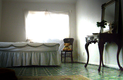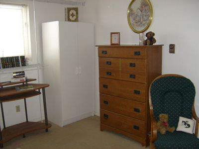 North Facing Bedroom with twin , dresser, cherry wood tables, TV, Cable, wireless internet, work out bench, row machine avail.